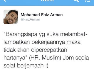 As Salamualaikum Wa Rahmatullah! Semoga Kita Dibawah Rahmat Dan Hidayah Allah swt! Tunaikan Hak Allah swt antaranya SOLAT 5 Waktu! Kenali kami - http://on.fb.me/1Es7bRU ... http://on.fb.me/1LvGtNN