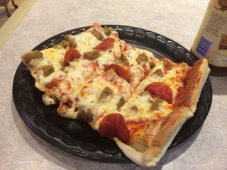 Questionable quality pizzas despite having an oven. Pretty tasteless but not soggy!
