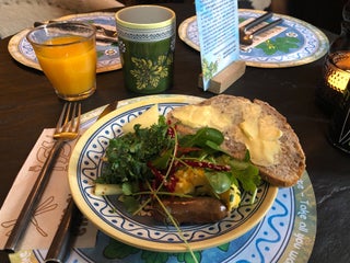 Breakfast at the orangerie! Beautiful decoration in a pet and children friendly place and a simple but exquisite breakfast buffet.