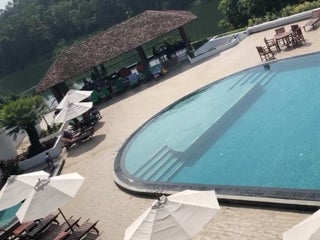 Pool side dining with a perfect view and a nice menu...